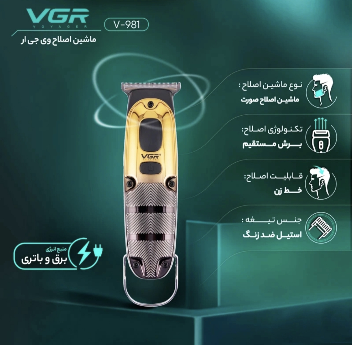 ماشین اصلاح وی جی آر مدل V-981 با تکنولوژی برش مستقیم و صفرزن